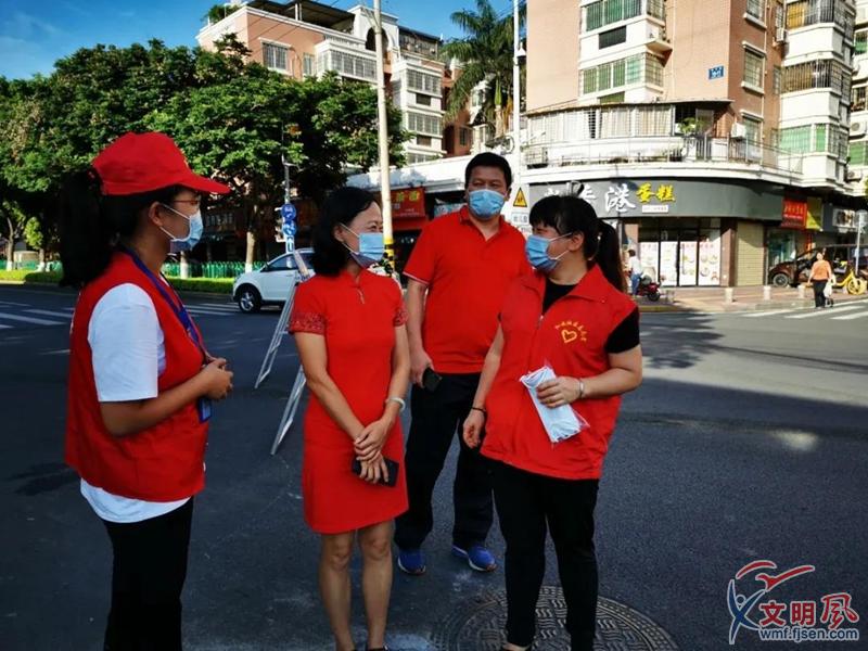 志愿者與考生家長交流。湖里區(qū)委文明辦供圖