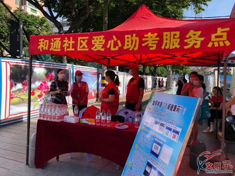 年年都有的愛心小帳篷,今年更不缺席。湖里區(qū)和通社區(qū)、坂尚社區(qū)、禾緣社區(qū)、禾盛社區(qū)、興隆社區(qū)的工作人員及志愿者貼心開展護航高考志愿服務(wù)活動,在轄區(qū)內(nèi)的雙十中學枋湖校區(qū)、廈門六中、廈門三中考場附近設(shè)置愛心助考點。