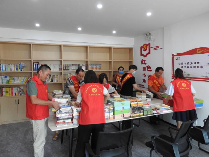 志愿者們?cè)趩问鐓^(qū)新時(shí)代文明實(shí)踐站整理贈(zèng)送的書籍 李秀坤供圖