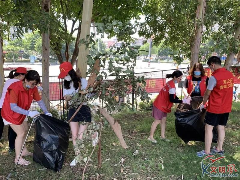 社區(qū)青少年參與到潔凈家園活動中。北附小社區(qū)供圖