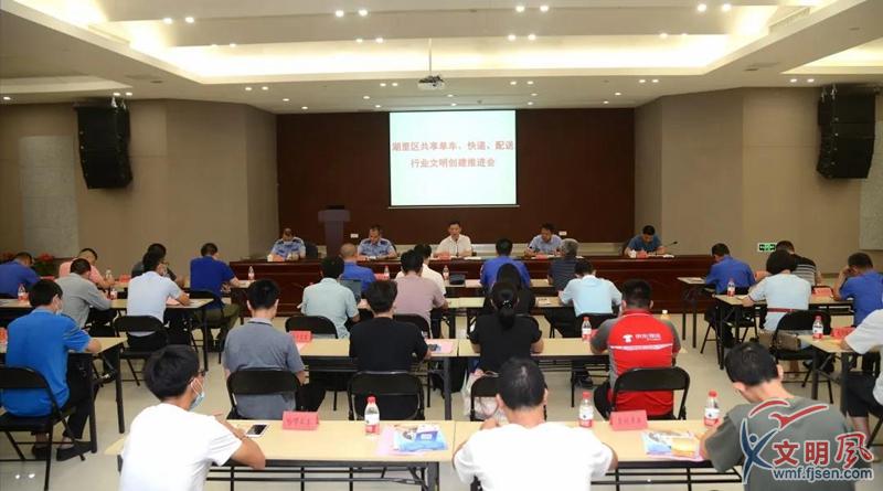文明風7月28日訊(通訊員 丁嵐)為貫徹落實市委《關(guān)于開展市民文明素質(zhì)提升和行業(yè)文明創(chuàng)建活動》的相關(guān)要求,湖里區(qū)召開“共享單車、快遞、配送行業(yè)創(chuàng)建文明推進會”,倡議共享單車、快遞、配送企業(yè)員工自覺遵守文明公約、交通法規(guī)和城市管理法律法規(guī),讓每一名騎乘人員爭當文明踐行者和傳播者,成為我區(qū)一道“流動風景線”。