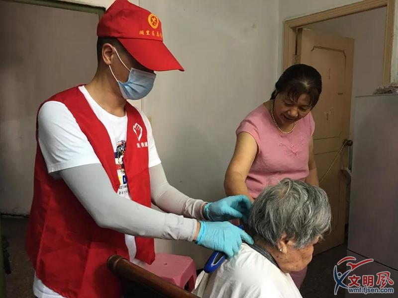 上門為老人剪發(fā),受到老人們的好評。湖里街道供圖