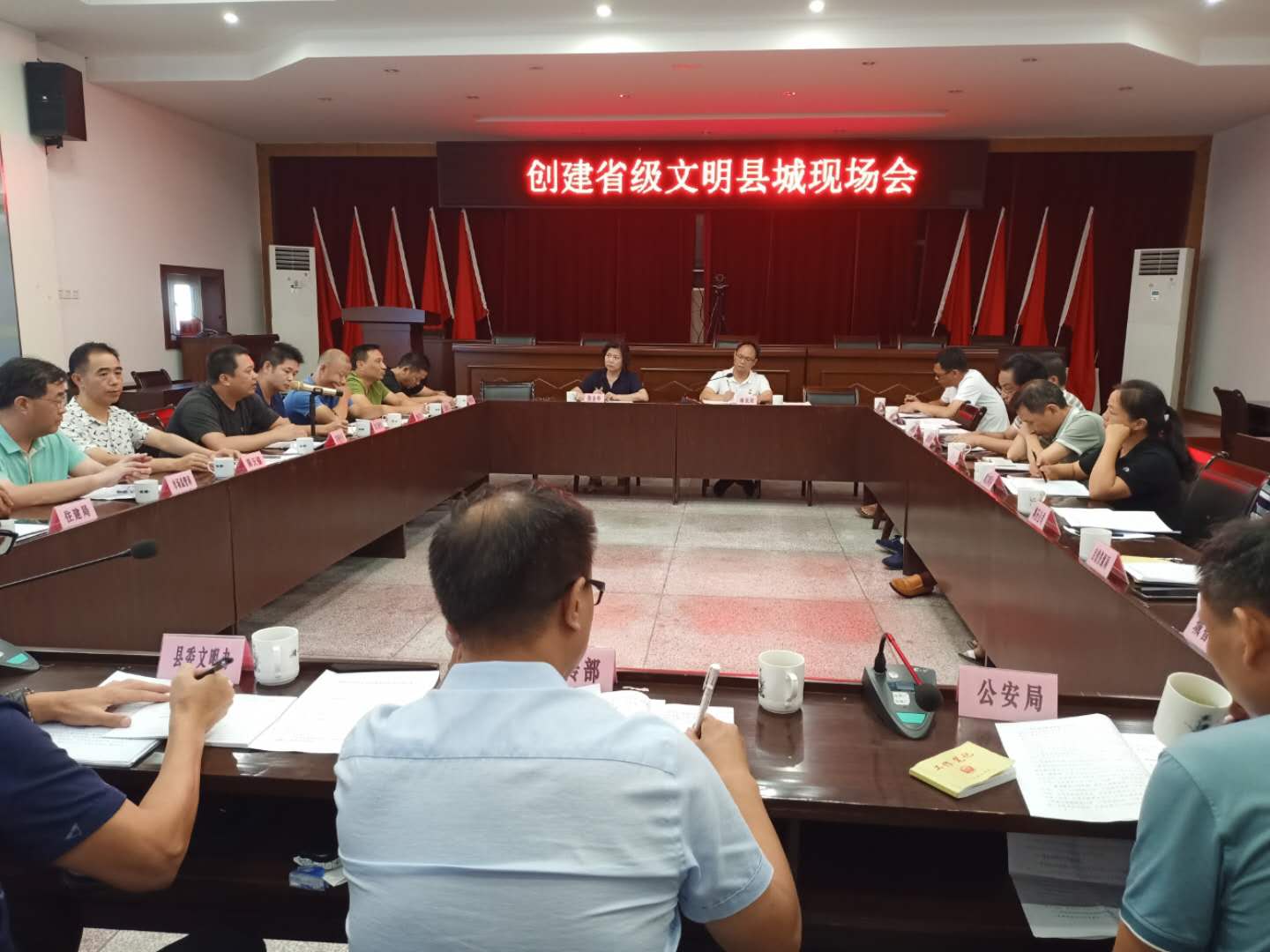 文明風(fēng)7月31日訊(通訊員 宋春蘭) 7月31日下午,尤溪縣委常委、宣傳部部長(zhǎng)林永田主持召開創(chuàng)城工作現(xiàn)場(chǎng)會(huì),縣人大常委會(huì)副主任張金華,城關(guān)鎮(zhèn)書記、鎮(zhèn)分管領(lǐng)導(dǎo)、鎮(zhèn)文明辦主任、各社區(qū)書記,縣委宣傳部、文明辦、縣公安局、交通運(yùn)輸局、城管局、住建局、自然資源局、市場(chǎng)監(jiān)督局、鴻圣公司等單位負(fù)責(zé)同志,共30余人參加會(huì)議。本次會(huì)議對(duì)創(chuàng)城工作進(jìn)行問題再查擺、責(zé)任再壓實(shí)、措施再?gòu)?qiáng)化,全力以赴推進(jìn)省級(jí)文明縣城創(chuàng)建工作。