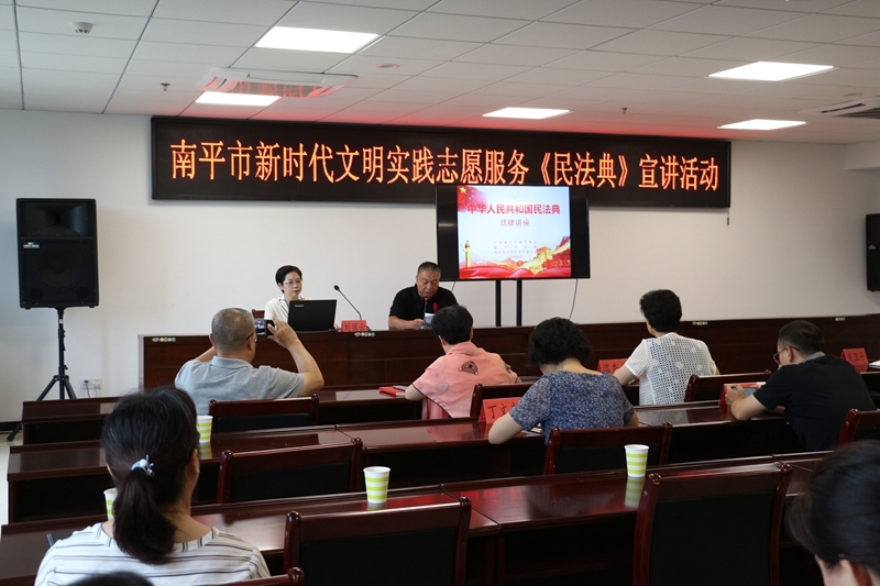 東南網(wǎng)訊(記者 鄭正華 陳艷)為深入貫徹落實(shí)習(xí)近平總書記關(guān)于切實(shí)實(shí)施民法典的重要講話精神,扎實(shí)做好民法典宣傳普及,增強(qiáng)市直機(jī)關(guān)廣大黨員干部學(xué)法意識(shí)和用法能力,8月7日上午,由南平市委文明辦主辦的南平市新時(shí)代文明實(shí)踐《民法典》志愿宣講活動(dòng)在潭舉行。南平市委文明辦主任丁愛(ài)英,市婦聯(lián)主席溫秀美,市文聯(lián)主席黃衛(wèi)平等領(lǐng)導(dǎo)出席宣講活動(dòng)。市委宣傳部、市委文明辦、市總工會(huì)、團(tuán)市委、市婦聯(lián)、市文聯(lián)等單位干部職工共約50人參加活動(dòng)。