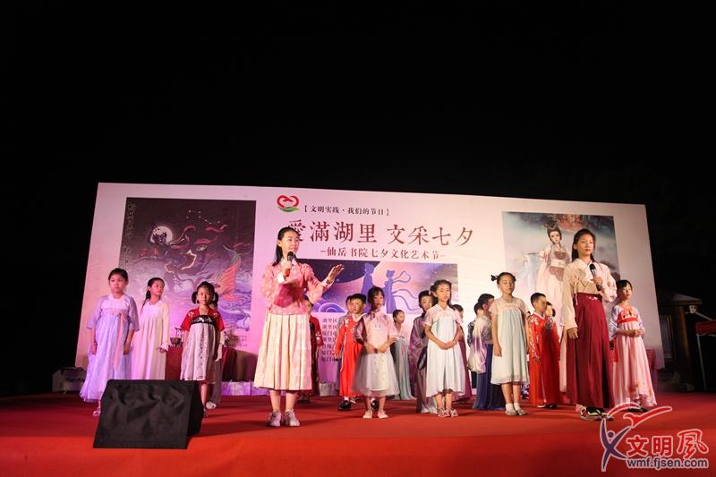 七夕文化匯演前,“雙星祭典”民俗儀式率先登場。仙岳公園文化廣場的舞臺上,身著漢服的禮儀官按照傳統(tǒng)形式“拜魁星”“祭七娘”,儀式古樸、莊重,禮儀官口頌祈愿祝詞,有諸多美好含義,讓人沉浸在濃郁的民俗氛圍里。
