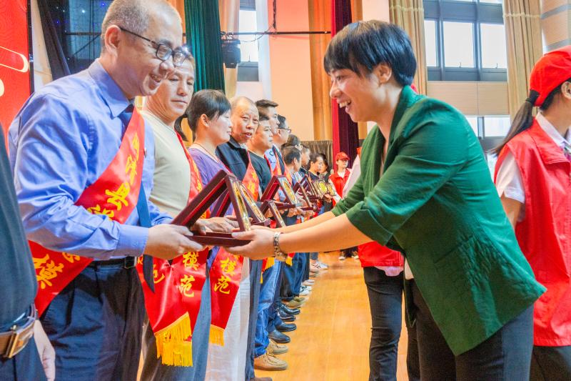 閩清縣委常委、宣傳部部長(zhǎng)林燕青為第四屆閩清道德模范授牌 閩清縣委文明辦供圖