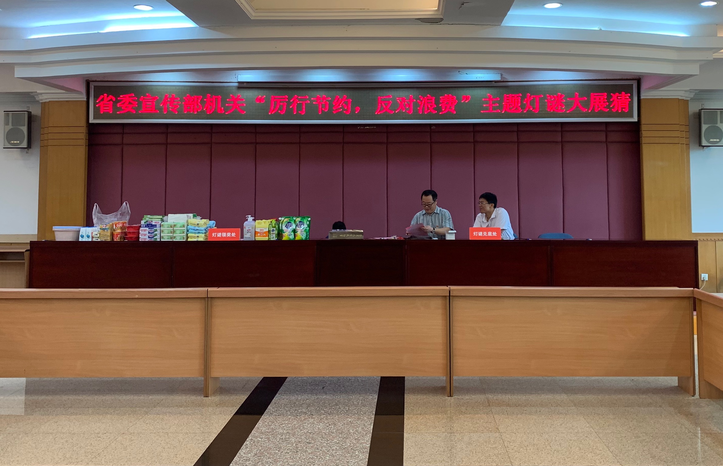 文明風(fēng)10月10日訊 適逢國慶、中秋佳節(jié)來臨之際,為進(jìn)一步營造濃厚節(jié)日氛圍、豐富機(jī)關(guān)干部職工業(yè)余文化生活,9月28日上午,中共福建省委宣傳部機(jī)關(guān)工會委員會、福建省民間文藝家協(xié)會,攜手福建省民間文藝家協(xié)會燈謎學(xué)術(shù)委員會在省委宣傳部機(jī)關(guān)成功舉辦 “厲行節(jié)約,反對浪費(fèi)”主題燈謎展猜活動。