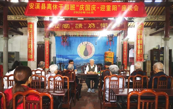 安溪縣離休干部班在舊城隍廟舉辦“慶國(guó)慶·迎重陽(yáng)”座談會(huì)。圖源:安溪老干局