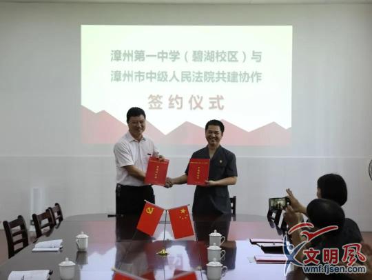 為進一步推進校園法治教育,10月27日下午,漳州中院黨組成員、政治部主任翁志剛帶隊走進漳州一中(碧湖校區(qū))開展“送法進校園”活動,并舉行共建協(xié)作簽約儀式。漳州一中(碧湖校區(qū))常務(wù)副校長高新建、副校長林立雄、蔡碧榕參加簽約儀式。共青團漳州市委副書記高國亮蒞臨現(xiàn)場指導(dǎo)。