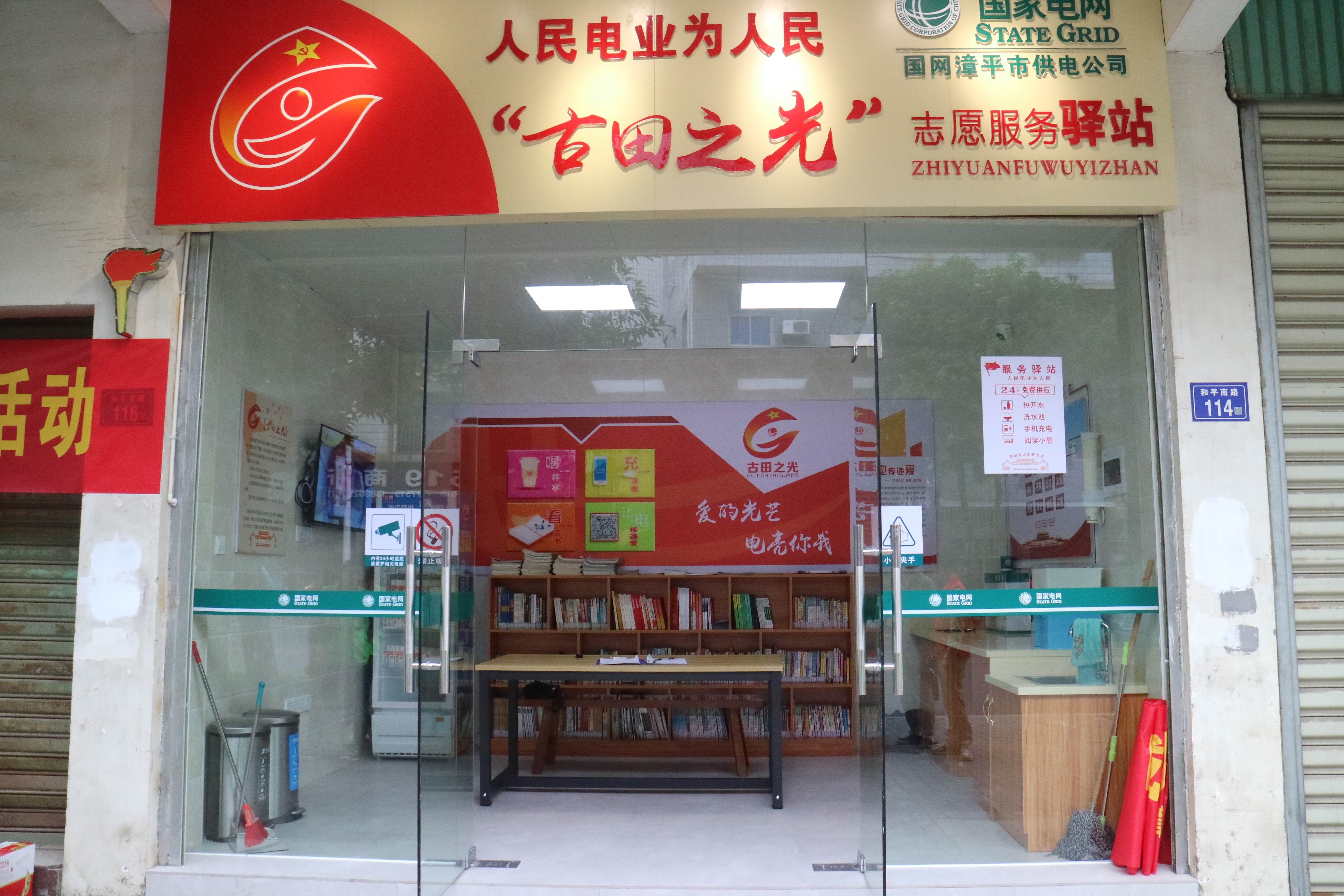 “古田之光”志愿服務(wù)驛站位于漳平市和平南路116號(hào),是國網(wǎng)漳平市供電公司為戶外勞動(dòng)者建的“家”。一進(jìn)入驛站,首先映入眼簾的是電視、飲水機(jī)、便民箱、椅子、充電器、書架……麻雀雖小,五臟俱全,可為戶外工作者及需要特殊關(guān)愛的群體,以及為其他有需求的社會(huì)公眾提供周到、貼心的服務(wù)。只要走進(jìn)驛站,都可以享受到飲水、臨時(shí)休息、手機(jī)充電、書籍借閱、應(yīng)急藥品等溫馨、周到、貼心的便民服務(wù)。志愿服務(wù)驛站還是一個(gè)圖書漂流站,市民可以自愿到驛站借閱圖書,也可以將自己的書放入驛站讓別人借閱,讓圖書在城市之間漂流。
