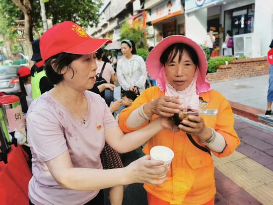 志愿者服務(wù)環(huán)衛(wèi)工人。(湖里區(qū)委文明辦供圖)