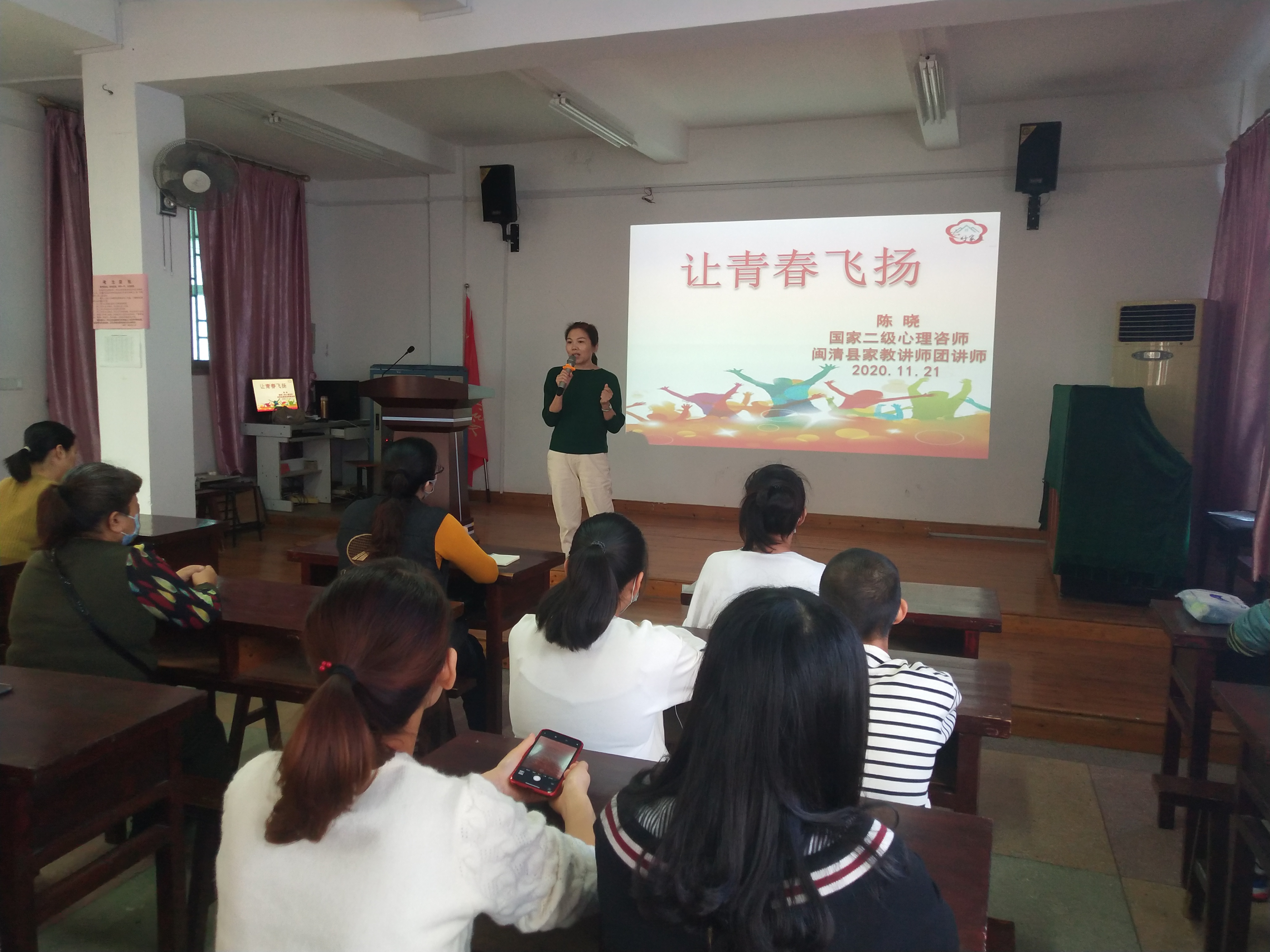 閩清縣未成年人心理健康輔導(dǎo)站成員、國家二級心理咨詢師陳曉為家長做《《讓青春飛揚(yáng)》主題心理健康輔導(dǎo)課 閩清縣委文明辦供圖