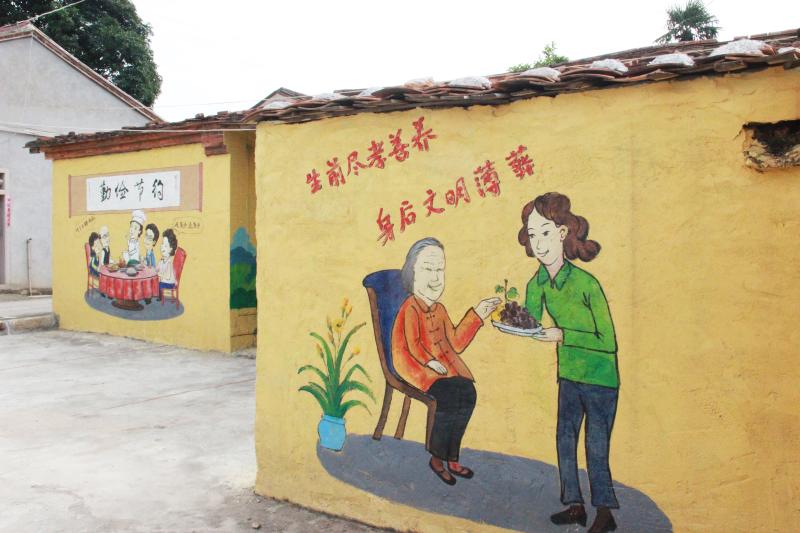 墻體彩繪宣傳孝道新風(fēng)(泉港區(qū)委文明辦供圖 陳燕燕攝)