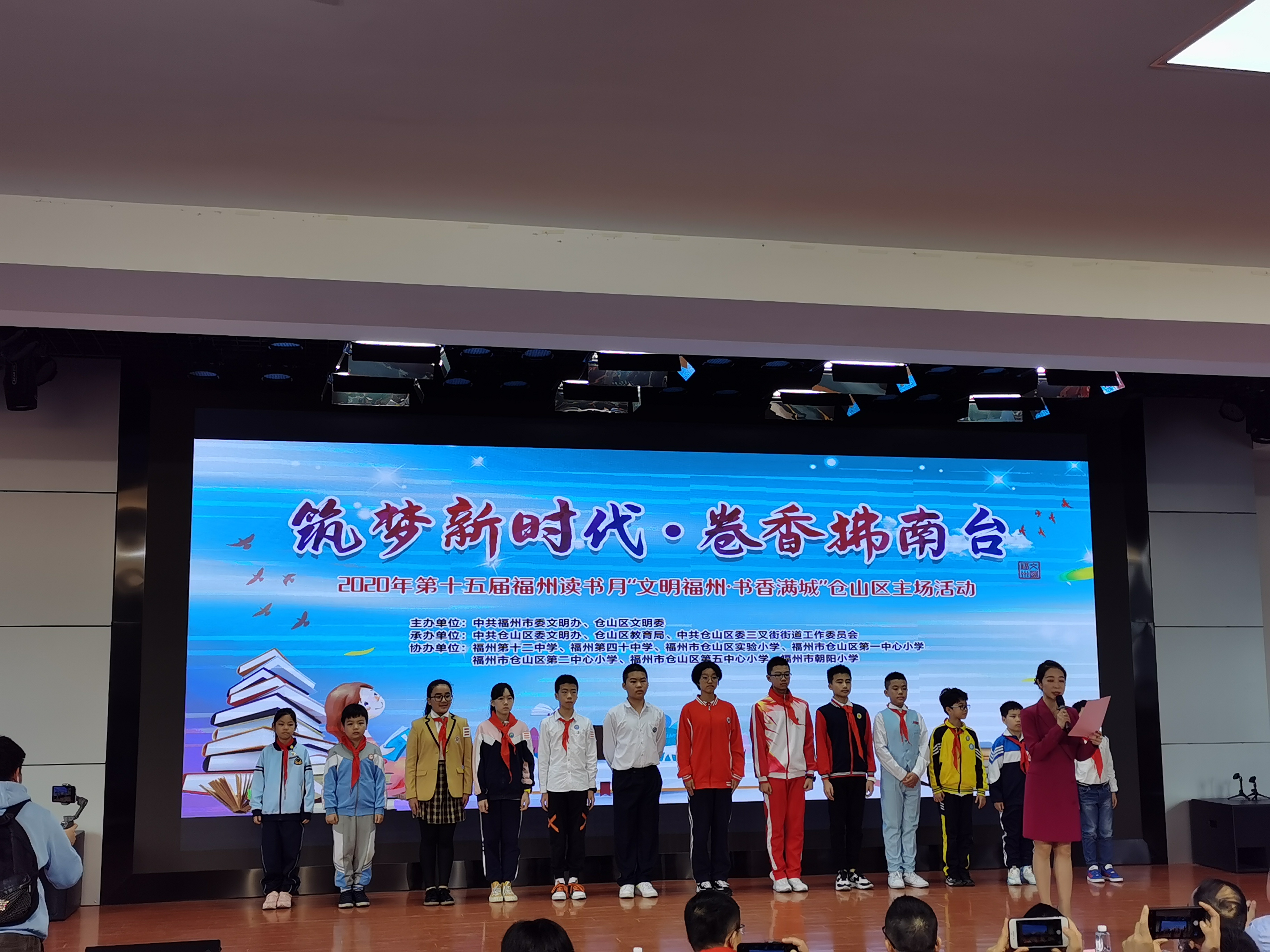 文明風(fēng)11月28日訊(通訊員傅小芳)為了進(jìn)一步踐行社會(huì)主義核心價(jià)值觀,弘揚(yáng)傳統(tǒng)優(yōu)秀文化,提高學(xué)生的閱讀意識(shí)和文化素質(zhì),增強(qiáng)民族自信心和自豪感。11月27日上午,由中共福州市委文明辦、倉山區(qū)文明委主辦,中共倉山區(qū)委文明辦、倉山區(qū)教育局、中共倉山區(qū)委三叉街街道工作委員會(huì)承辦,福州第十二中學(xué)、福州第四十中學(xué)、福州市倉山區(qū)實(shí)驗(yàn)小學(xué)、福州市倉山區(qū)第一中心小學(xué)、福州市倉山區(qū)第二中心小學(xué)、福州市倉山區(qū)第五中心小學(xué)、福州市朝陽小學(xué)聯(lián)合協(xié)辦的“筑夢(mèng)新時(shí)代·卷香拂南臺(tái)”——2020年第十五屆福州讀書月“文明福州·書香滿城”倉山區(qū)主場(chǎng)活動(dòng)在福州第十二中學(xué)舉行。