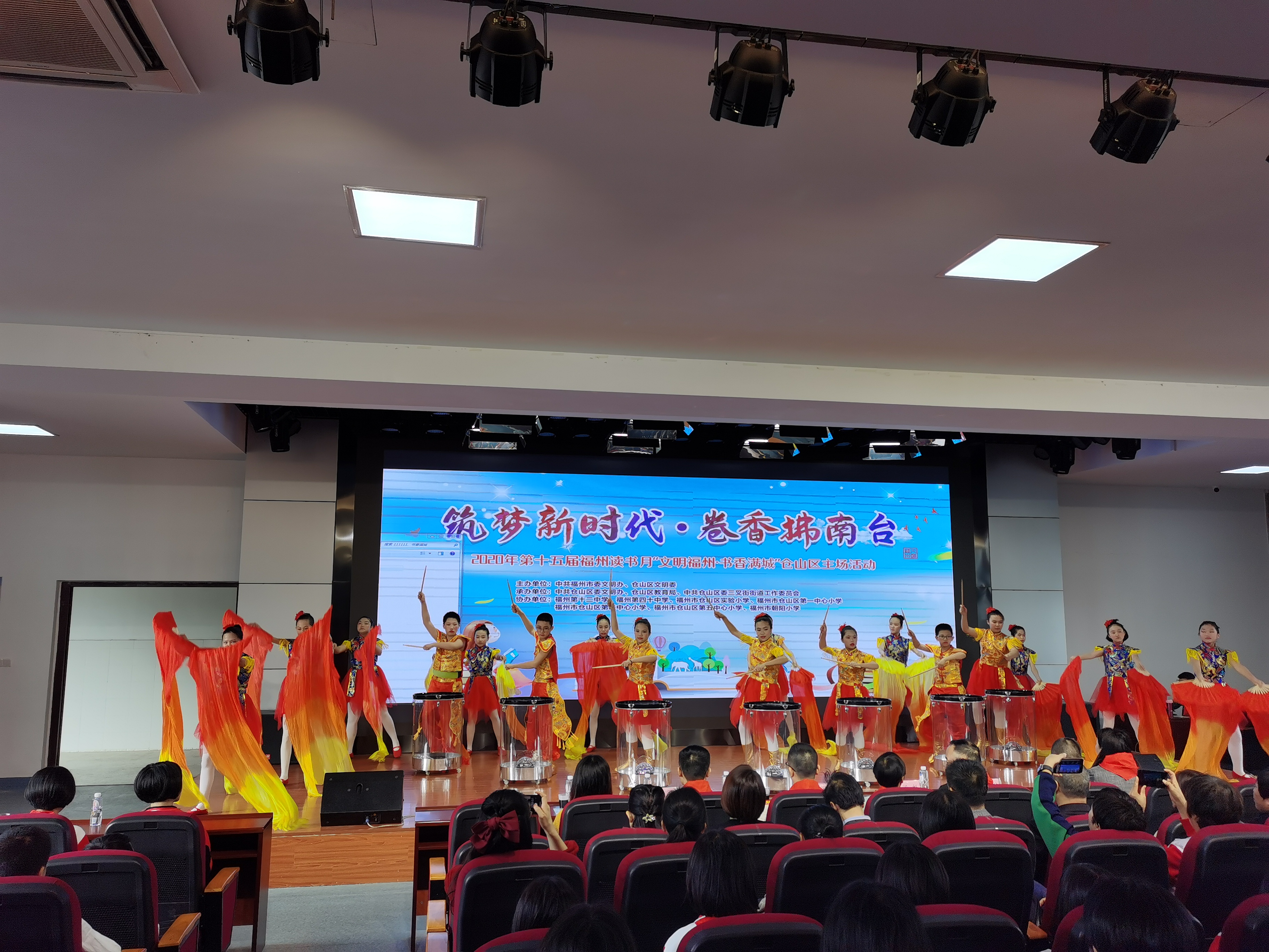 本次讀書月倉山區(qū)主場(chǎng)活動(dòng)在福州市朝陽小學(xué)《鼓舞飛揚(yáng)》的鼓聲中拉開序幕,以充滿活力的節(jié)奏為祖國獻(xiàn)禮,《天上的草原》《詩意中國》等朗誦節(jié)目為我們描繪出祖國的大好河山,激發(fā)了大家熱愛祖國的熱情。除此之外,孩子們還帶來了情景詩朗誦、演唱、扇舞等節(jié)目,演繹著倉山學(xué)子的獨(dú)特風(fēng)采。據(jù)了解,本次讀書月活動(dòng)除了讀書月啟動(dòng)儀式外,現(xiàn)場(chǎng)還舉辦了為文明校園、2020年倉山區(qū)新時(shí)代好少年贈(zèng)書和讀書活動(dòng)風(fēng)采展示等環(huán)節(jié)。