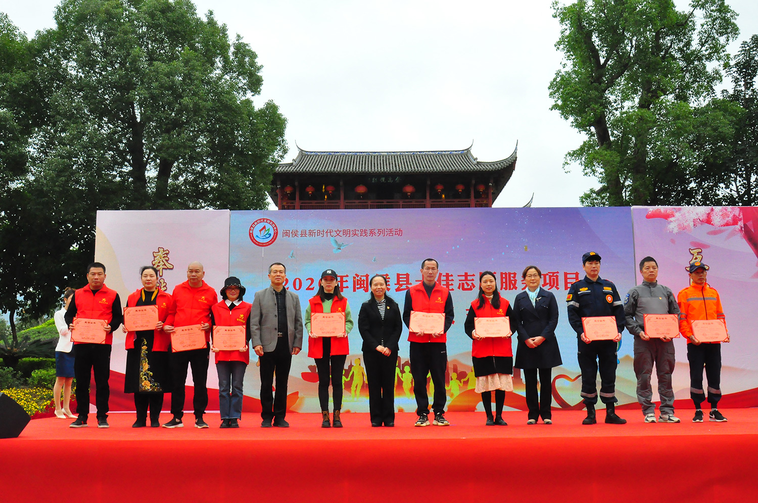 縣領(lǐng)導(dǎo)和閩侯縣“十佳”志愿服務(wù)項(xiàng)目獲獎(jiǎng)?wù)叽砗嫌?,陳楓攝