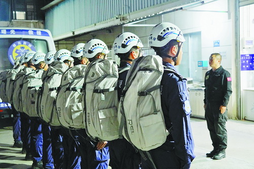 深夜,曙光救援隊成員集結(jié)完畢,準備出發(fā)執(zhí)行救援任務。(廈門曙光救援隊 供圖)