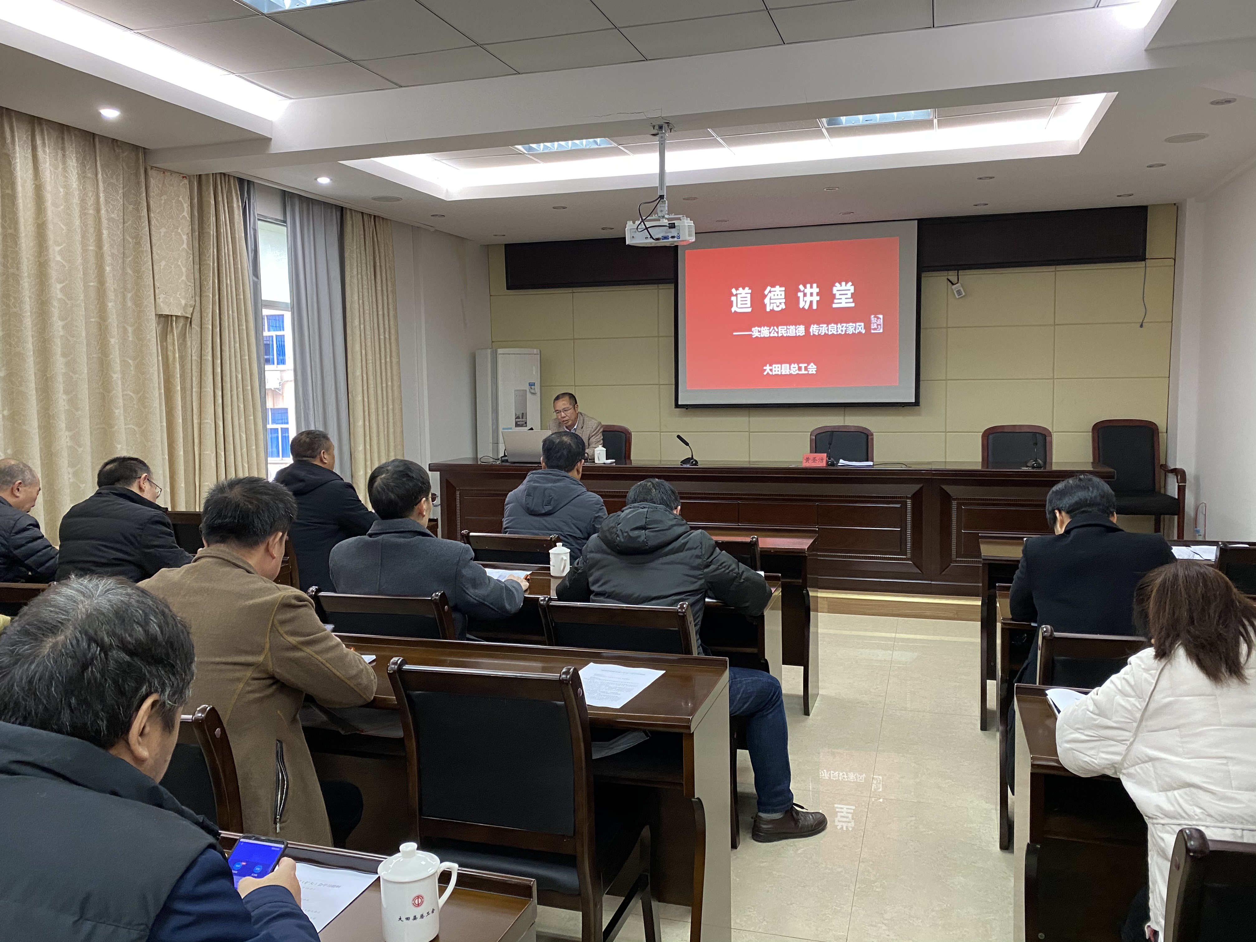 文明風(fēng)12月21日訊(通訊員高巖)為培育踐行社會主義核心價值觀,傳承良好家風(fēng),弘揚傳統(tǒng)美德。12月18日在縣總工會五樓會議室舉辦家風(fēng)舉辦“實施公民道德,傳承良好家風(fēng)”道德講堂活動,全縣總工會干部職工35多人參加。由縣文明辦主任科員高上釵主講。