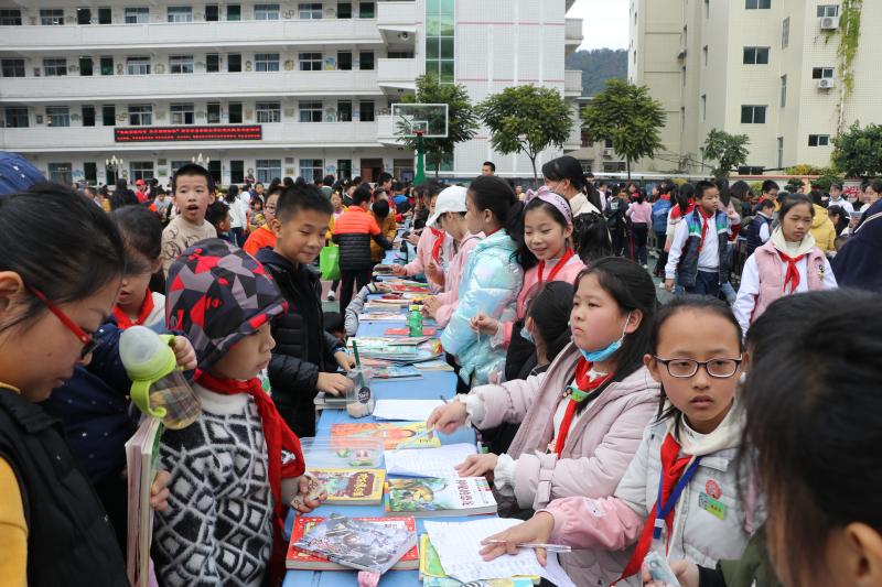 華安縣實(shí)驗(yàn)小學(xué)讀書(shū)節(jié)“紅領(lǐng)巾跳蚤書(shū)市”熱鬧開(kāi)市。 華安縣委文明辦供圖