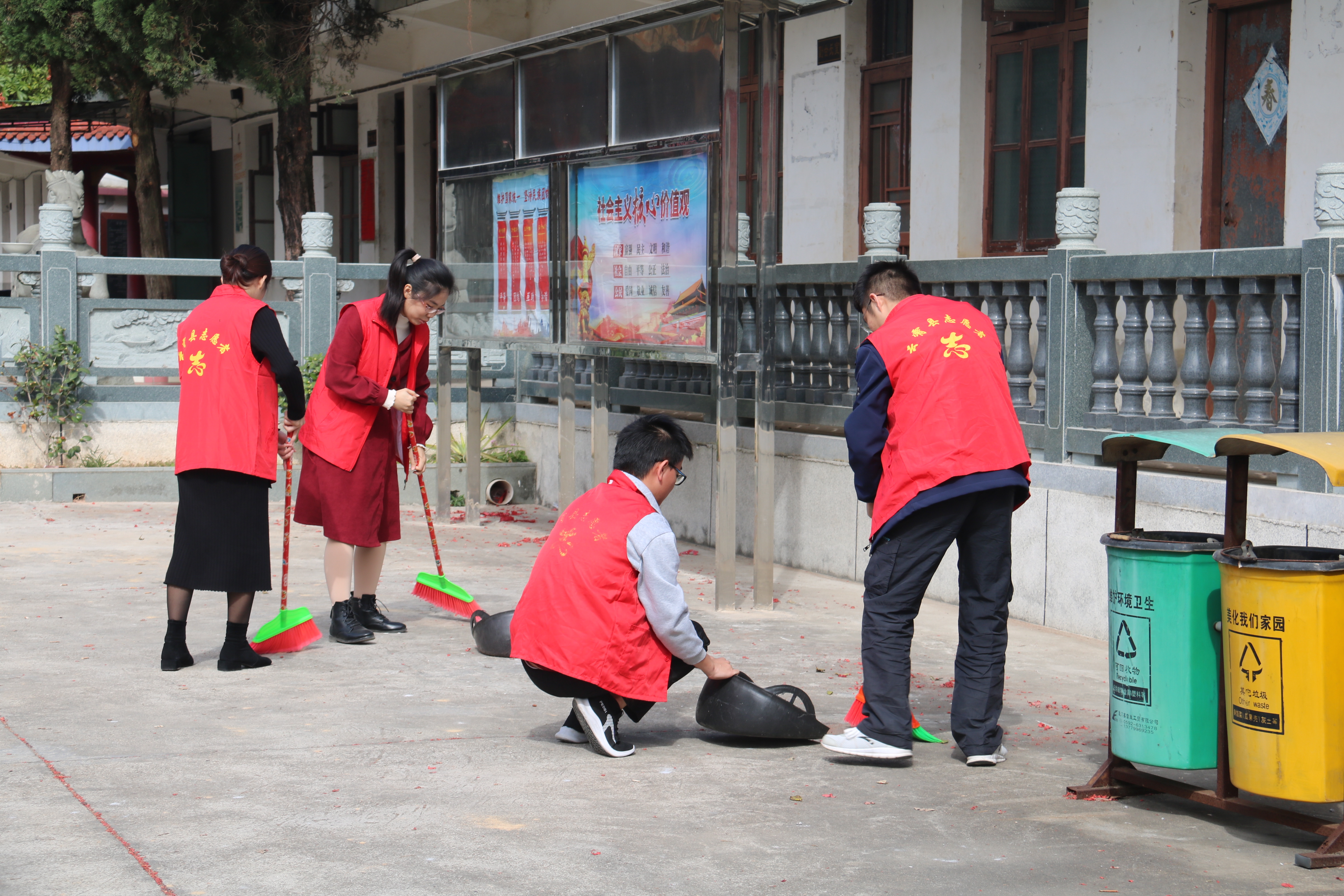 燃炮處,石廊邊,香臺旁,只見志愿者們紛紛拿起掃帚簸箕仔細(xì)清掃著,大家各司其職,分工協(xié)作,井然有序。不一會,前院外埕、廟內(nèi)邊角整潔一新。清掃活動結(jié)束后,志愿者們耐心地向往來的村民宣傳起文物保護(hù)的意義和政策,引導(dǎo)更多群眾提高文保意識,關(guān)注鄉(xiāng)土歷史,留心身邊文物,拒絕破壞文物本體的行為,切實(shí)增強(qiáng)對歷史文物的敬畏之心。