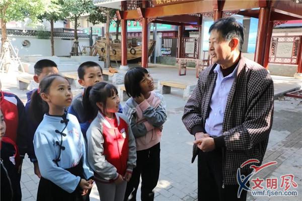 老校長(zhǎng)為孩子們講述“閩味文化”。霞陽(yáng)社區(qū)供圖
