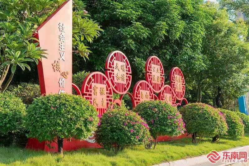 綠化帶中的文化墻 東南網(wǎng)記者 江瑞鑫 攝