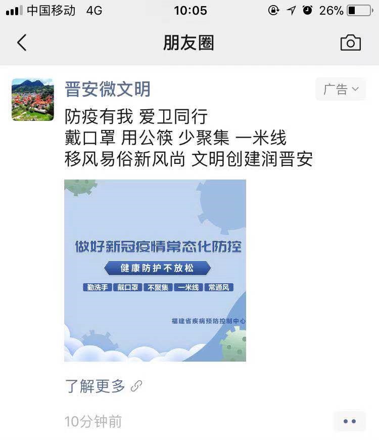 晉安微文明首發(fā)朋友圈防疫廣告! 晉安文明辦供圖