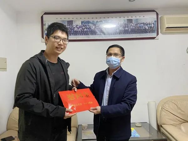 福建省委文明辦主任陳添貴向張涵送上慰問幫扶金
