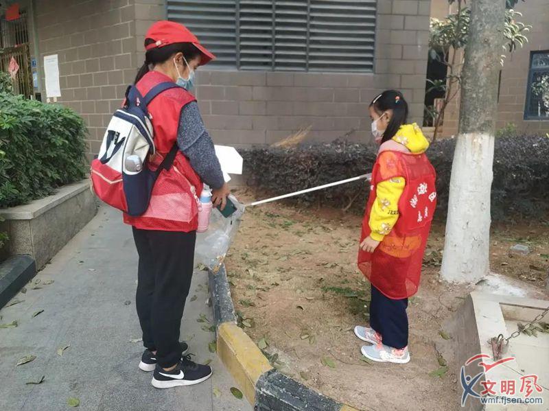 社工給親子志愿者們培訓(xùn)并做好人員分工。親子志愿者們配合默契,到了環(huán)境衛(wèi)生需要整理的地方,就拿出清潔工具有序進(jìn)行清理;到了人群較多的地方時(shí)就進(jìn)行疫情防控宣傳,提醒大家戴好口罩勤洗手,保持距離不聚集。