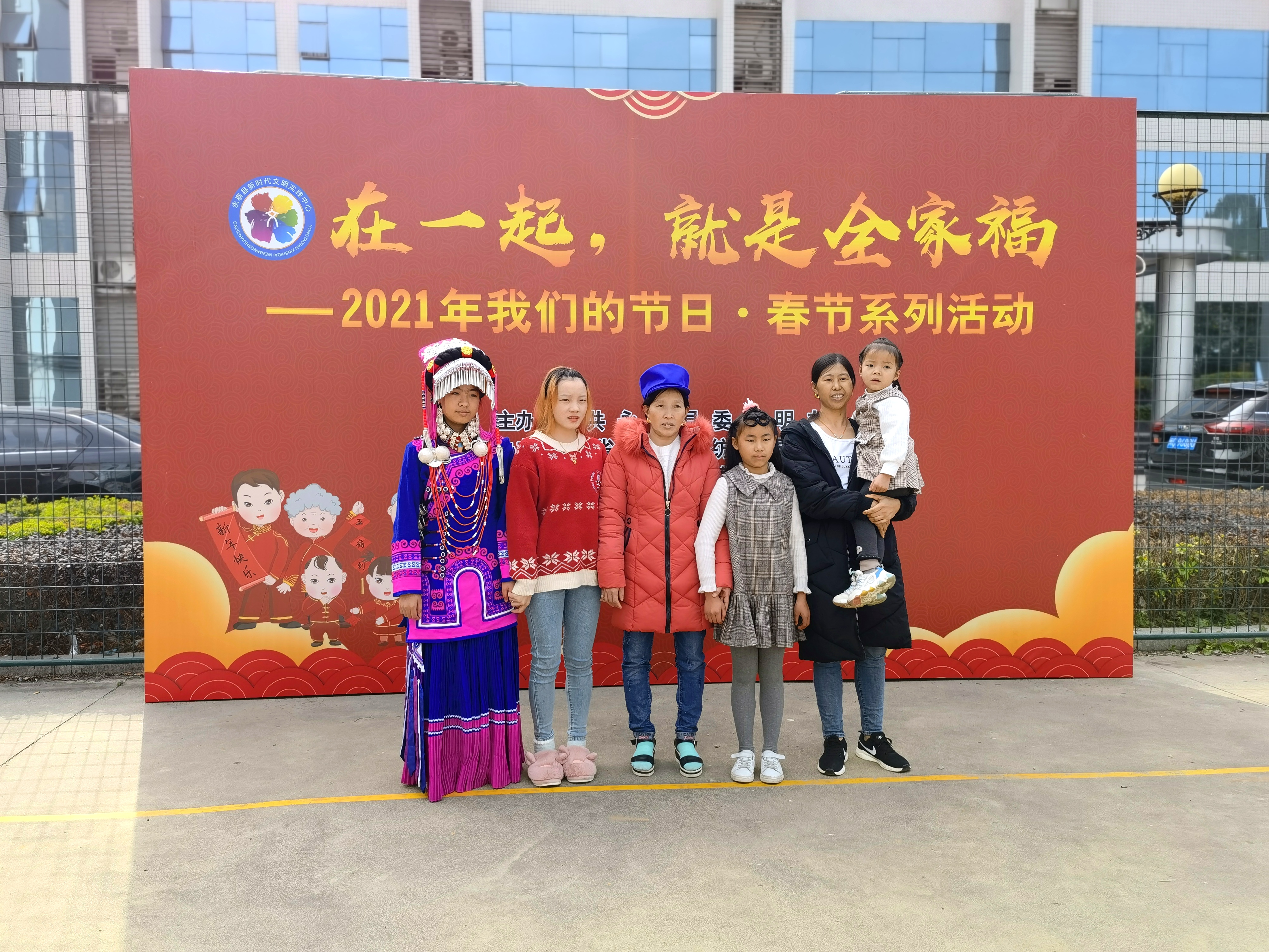 在永泰縣金泰紡織廠,一位來自四川大涼的彝族姑娘精心打扮,身穿家鄉(xiāng)特色服飾展現(xiàn)在人們,和家人約著在活動(dòng)墻前擺好姿勢(shì),露出甜美微笑,期待攝影師們的拍照。