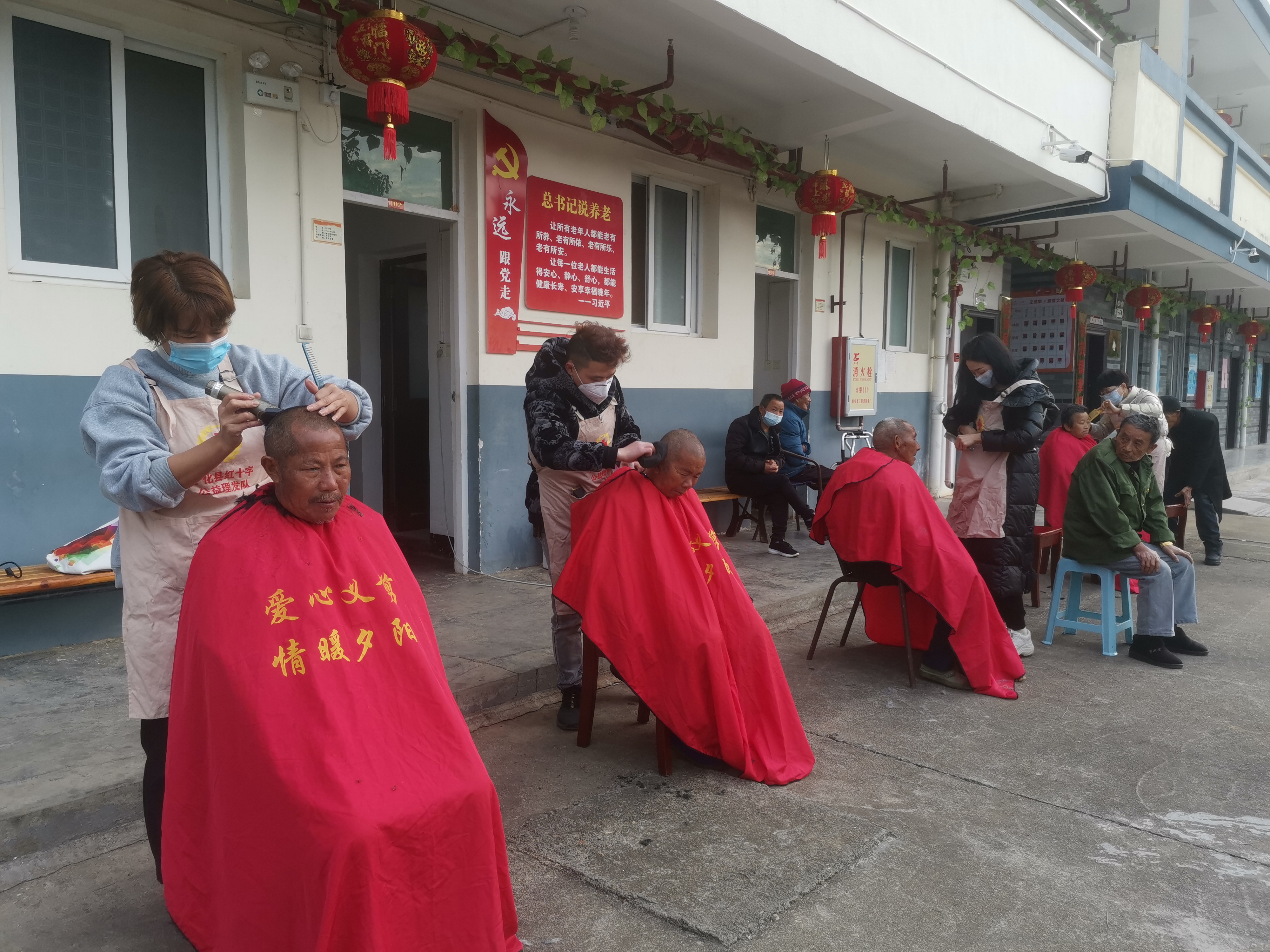 寧化縣紅十字會(huì)組織志愿者為老人免費(fèi)理發(fā)