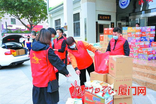馬巷青年創(chuàng)業(yè)促進會等翔安區(qū)“16580助學(xué)幫扶聯(lián)盟”成員單位志愿者準(zhǔn)備將愛心物資發(fā)放給留廈師生。(受訪單位 供圖)