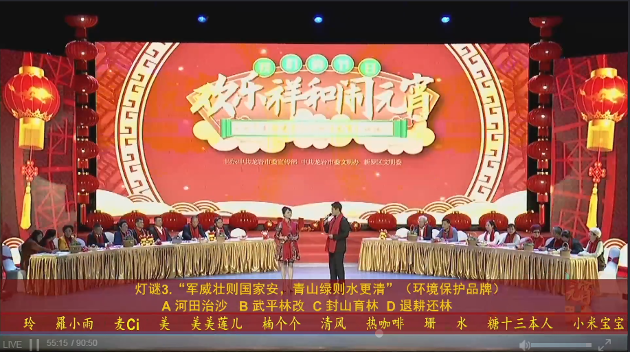 文明風(fēng)2月25日訊(通訊員 詹旭 王小珠)為弘揚(yáng)中華民族傳統(tǒng)文化,豐富廣大市民的文化生活,2月24日(正月十三)晚上8點(diǎn),由中共龍巖市委宣傳部、中共龍巖市委文明辦、新羅區(qū)文明委以傳統(tǒng)佳節(jié)元宵節(jié)慶為契機(jī)舉辦喜迎建黨100周年活動(dòng),聯(lián)合主辦“我們的節(jié)日 歡樂(lè)祥和鬧元宵——龍巖市喜迎建黨百年網(wǎng)上元宵燈謎晚會(huì)”,與全市人民進(jìn)行一場(chǎng)線上的歡聚。