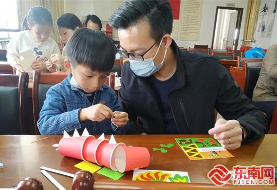 親子共同制作“紙杯舞龍”(湖邊社區(qū)供圖)