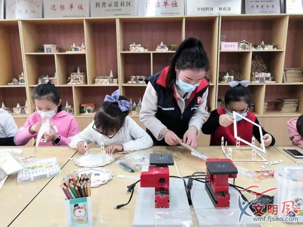 孩子們?cè)谏绻さ闹笇?dǎo)下制作花燈。(江村社區(qū)供圖)