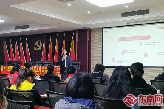 集美大學(xué)教授肖仕平為文明實(shí)踐站管理員宣講全會(huì)精神(吳林瑞 攝)