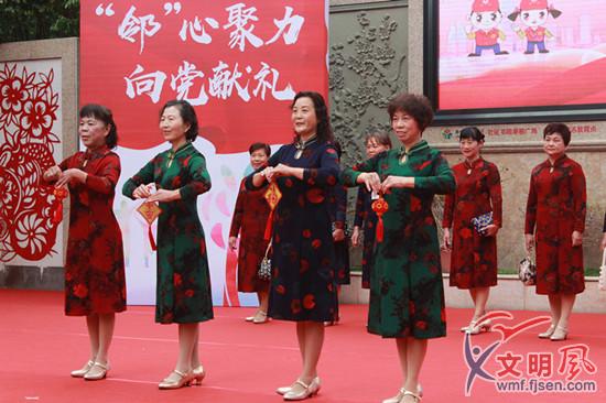 菁英講師團帶來手勢舞表演《一起走》;手工志愿服務隊結(jié)合旗袍秀,展示《指尖上的愛心》;法律志愿服務隊帶來詩朗誦《法在我心中》;垃圾分類志愿服務隊則表演了情景舞《垃圾分類我先行》;民樂、合唱志愿服務隊帶來歌伴舞《歌聲與微笑》;文明督導志愿服務隊志愿者齊聲合唱《沒有共產(chǎn)黨就沒有新中國》。在文藝表演的最后,志愿者們和廣大居民集體大合唱《學習雷鋒好榜樣》,將現(xiàn)場氛圍推向高潮。