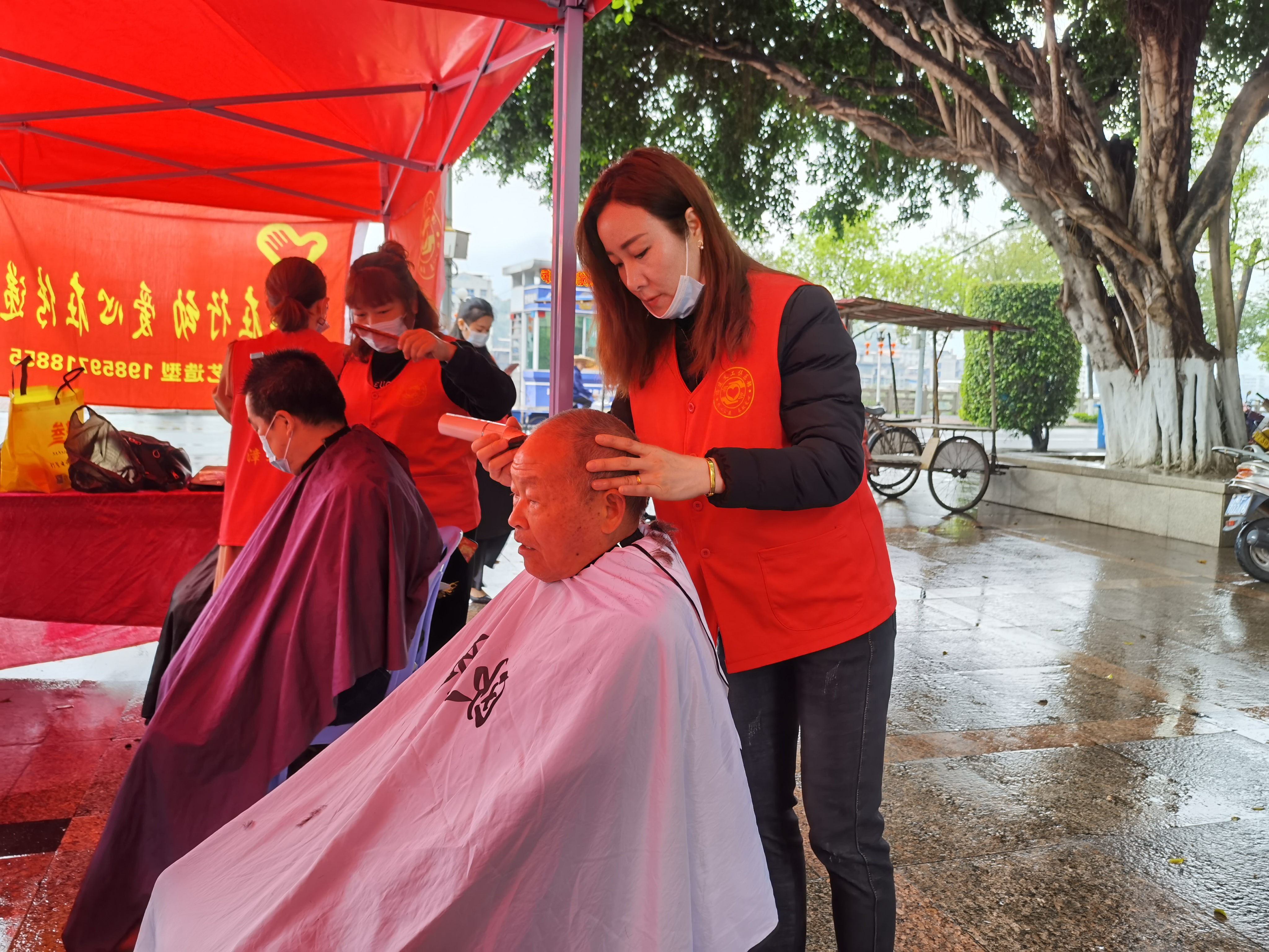志愿者為市民免費(fèi)理發(fā) 漳平市委文明辦供圖