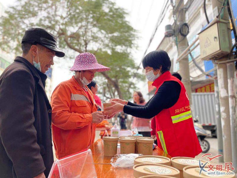 志愿者關(guān)愛環(huán)衛(wèi)工人。(同安區(qū)委文明辦供圖)