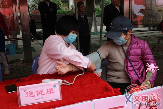 志愿者為居民測量血壓 夏菁 攝