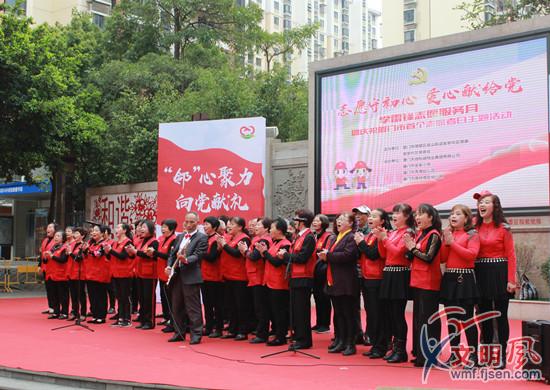 菁英講師團(tuán)帶來手勢舞表演《一起走》;手工志愿服務(wù)隊結(jié)合旗袍秀,展示《指尖上的愛心》;法律志愿服務(wù)隊帶來詩朗誦《法在我心中》;垃圾分類志愿服務(wù)隊則表演了情景舞《垃圾分類我先行》;民樂、合唱志愿服務(wù)隊帶來歌伴舞《歌聲與微笑》;文明督導(dǎo)志愿服務(wù)隊志愿者齊聲合唱《沒有共產(chǎn)黨就沒有新中國》。在文藝表演的最后,志愿者們和廣大居民集體大合唱《學(xué)習(xí)雷鋒好榜樣》,將現(xiàn)場氛圍推向高潮。