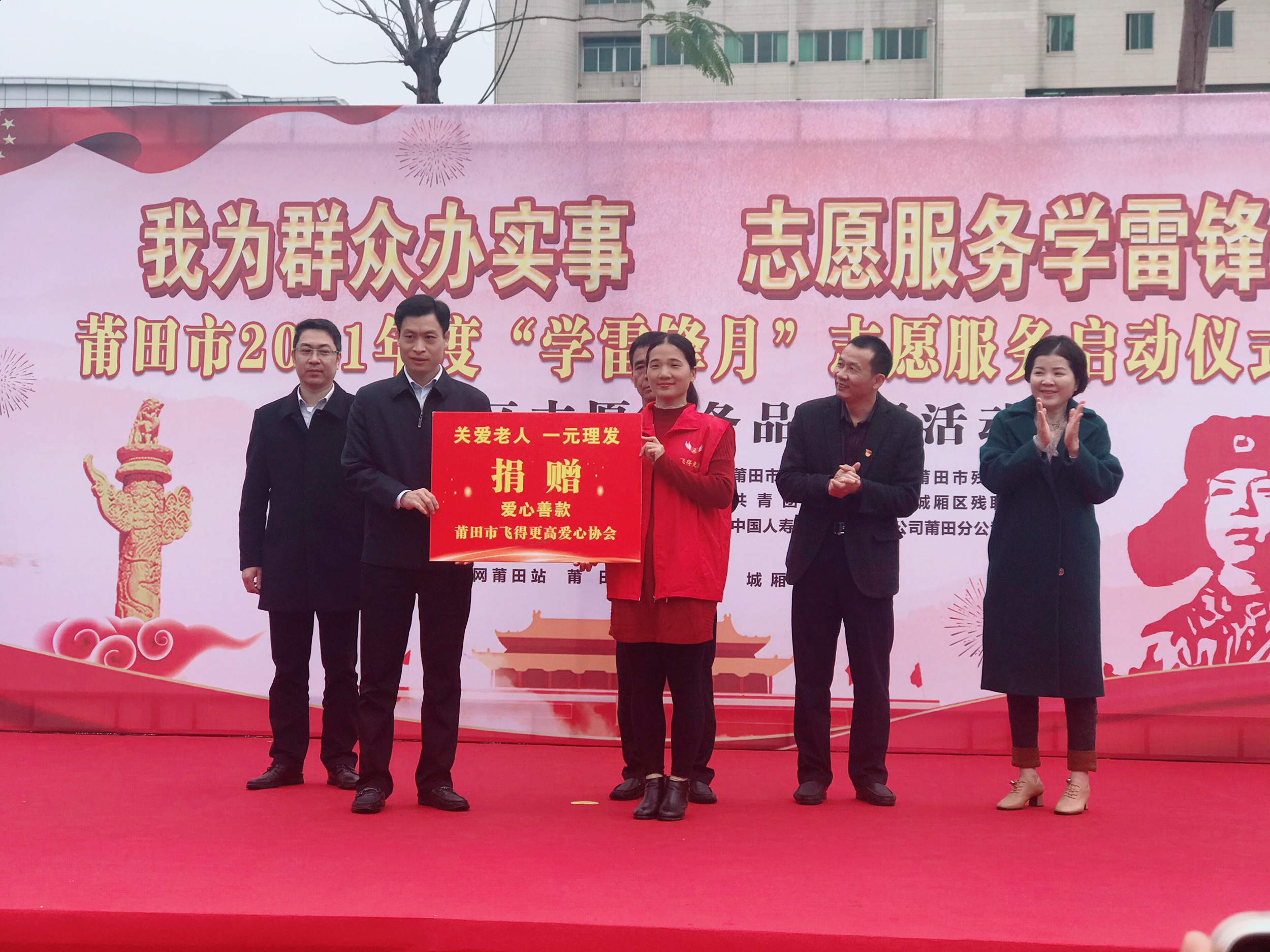 活動(dòng)現(xiàn)場(chǎng),城廂區(qū)委常委、宣傳部長(zhǎng)蘇德權(quán)為莆田市飛得更高愛(ài)心協(xié)會(huì)捐贈(zèng)愛(ài)心善款;市委文明辦領(lǐng)導(dǎo)為“一元理發(fā)”愛(ài)心商家頒發(fā)“尊老助殘 一元理發(fā)”牌匾;中國(guó)人壽保險(xiǎn)股份有限公司莆田分公司副總經(jīng)理黃華榮為城廂區(qū)志愿者協(xié)會(huì)頒發(fā)站點(diǎn)建設(shè)捐贈(zèng)款;市委文明辦和市相關(guān)部門(mén)的領(lǐng)導(dǎo)為愛(ài)心企業(yè)頒發(fā)牌匾。