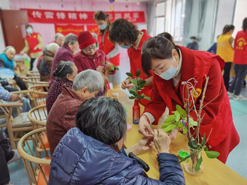志愿者帶領(lǐng)老人家開(kāi)展花藝活動(dòng) 永泰縣文明辦供圖