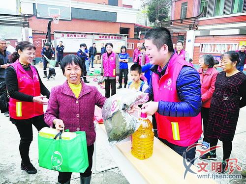 愛心志愿者為困難群眾送去暖心禮包。(同安區(qū)愛心辦供圖)