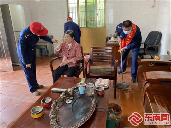 “市監(jiān)藍”志愿者為老人們打掃衛(wèi)生(集美區(qū)市場監(jiān)督管理局供圖)