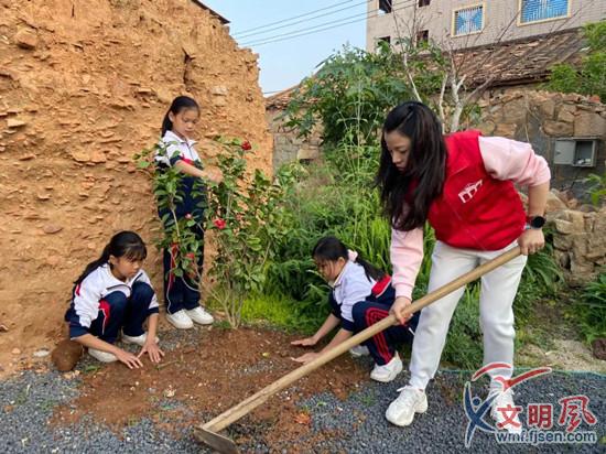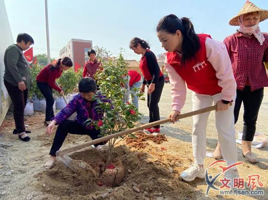 志愿者與村民細(xì)心地種下每一棵花樹 (翔安區(qū)委文明辦供圖)