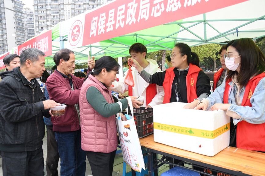 志愿者為群眾送上太平蛋和長壽面 閩侯文明辦供圖
