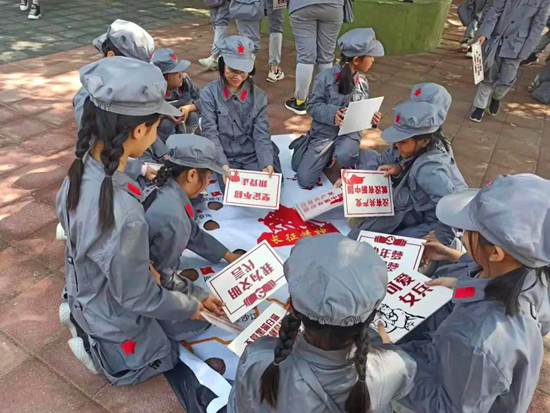 當(dāng)天現(xiàn)場(chǎng),從幼兒園孩子到小學(xué)生,多年齡段的孩子們?cè)诮坦俚闹笇?dǎo)下分組開展活動(dòng)。穿上統(tǒng)一的服裝,“小紅軍”們精神抖擻地選隊(duì)長(zhǎng)、選戰(zhàn)旗手、取隊(duì)名,在園區(qū)內(nèi)開展了豐富多彩的研學(xué)活動(dòng)。