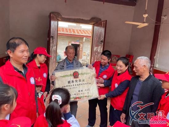 少先隊(duì)員觀摩了1958年由國務(wù)院頒發(fā)的獎(jiǎng)狀(翔安區(qū)委文明辦供圖)