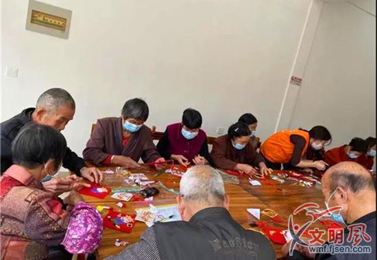 老人們認真地制作掛飾(翔安區(qū)委文明辦供圖)